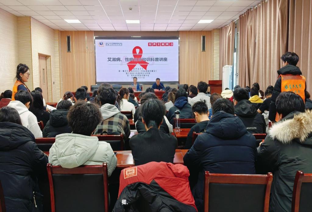 张志刚副主任医师以专业详实的讲解,系统普及防艾核心知识。从艾滋病的致病原理、传播途径,到科学预防措施、认知误区纠正,再到检测治疗政策、暴露后阻断方法等关键内容,层层递进、重点突出。讲解过程中,张主任通过真实案例拆解健康风险,用通俗语言解读专业知识,有效消除了同学们“谈艾色变”的恐惧心理。讲座结束后,青春健康教育同伴社成员向同学们发放红丝带和卫生用品,结合讲座所学知识,再次提醒大家将科学防护理念转化为日常行动,对自己和他人的健康负责。