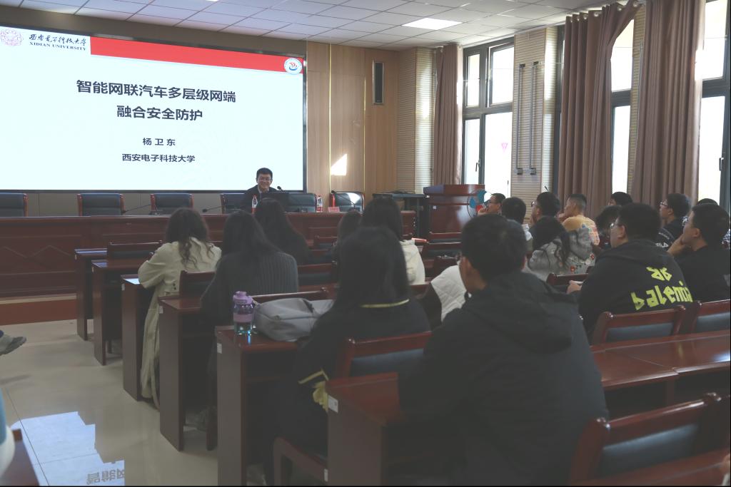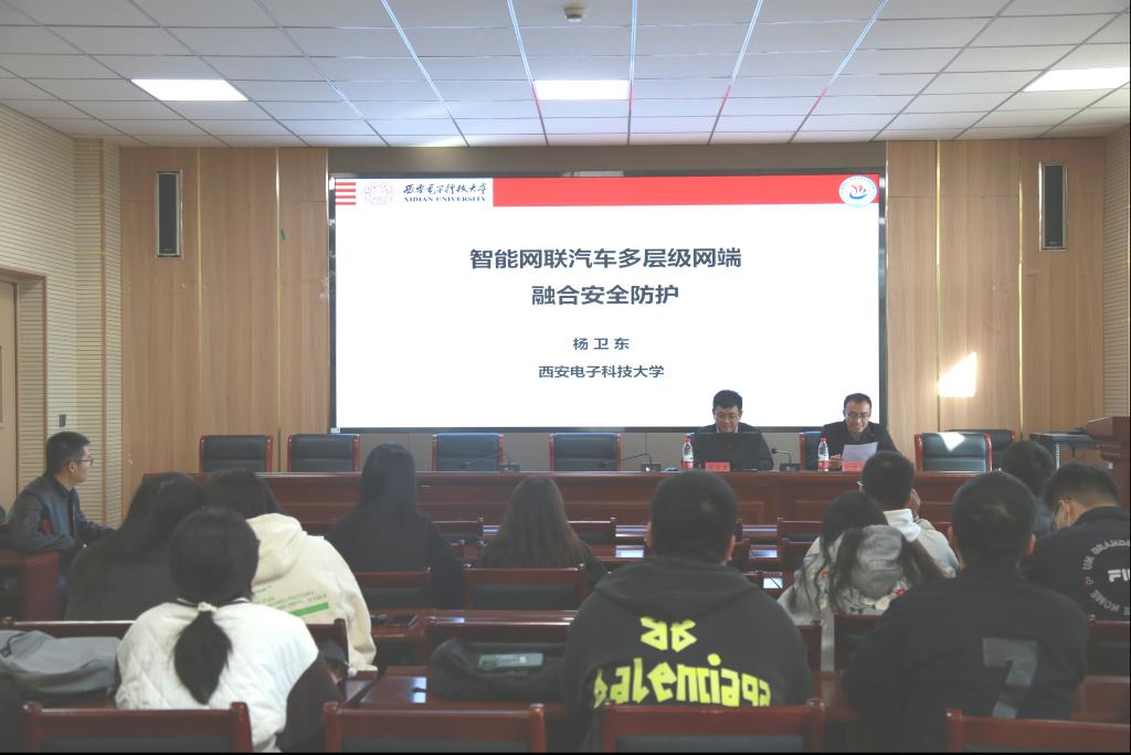 10月18日下午,yl23455永利邀请西安电子科技大学华山特聘教授杨卫东,在信息楼A202会议室为公司教师作题为《智能网联汽车多层级网端融合安全防护》的学术报告。会议由邱国英老师主持,公司教师代表参加了会议。