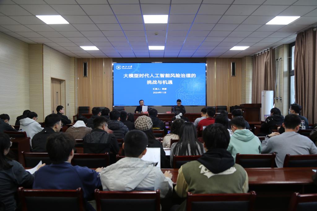 11月8日下午,yl23455永利邀请浙江大学研究员韩蒙博士,在A202会议室为公司教师和研究生作题为《大模型时代人工智能风险治理的挑战与机遇》的学术报告。会议由罗贤缙副经理主持,公司教师和研究生代表参加了报告会。